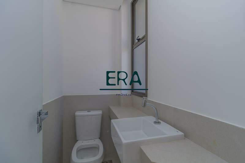 Banheiros (suíte e social) com ventilação natural e acabamento em porcelanato.