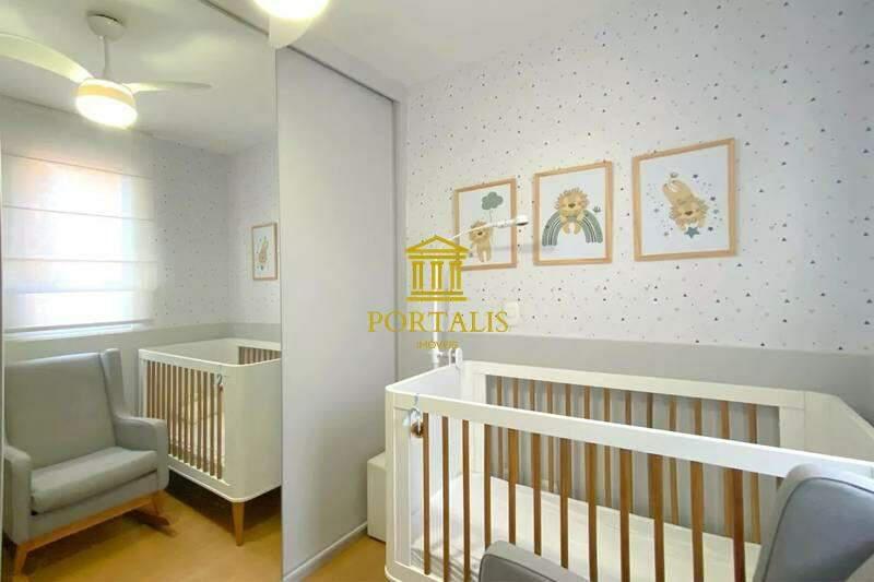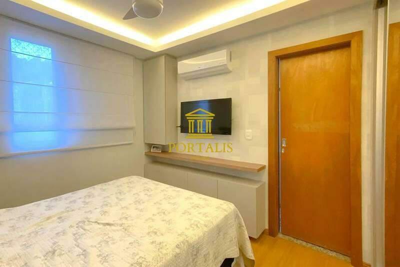 02 quartos com armários planejados e piso em laminado de madeira, sendo 01 suíte com ar-condicionado.