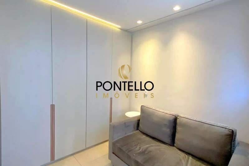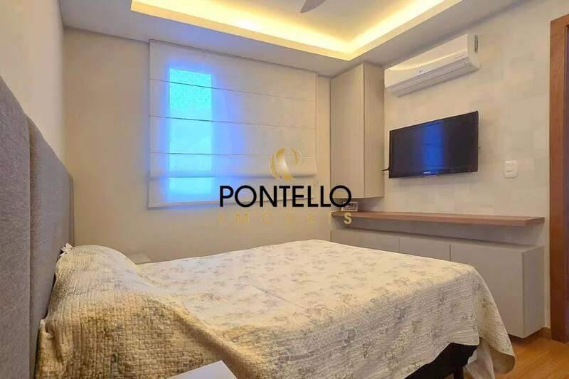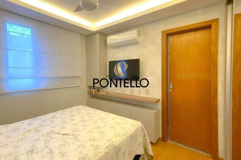 02 quartos com armários planejados e piso em laminado de madeira, sendo 01 suíte com ar-condicionado.