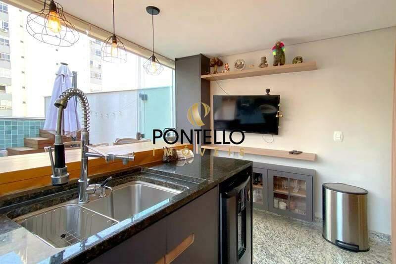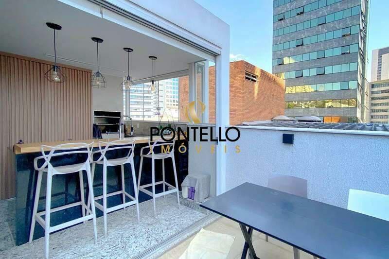 Cobertura com espaço gourmet, churrasqueira, piscina e área de serviço.