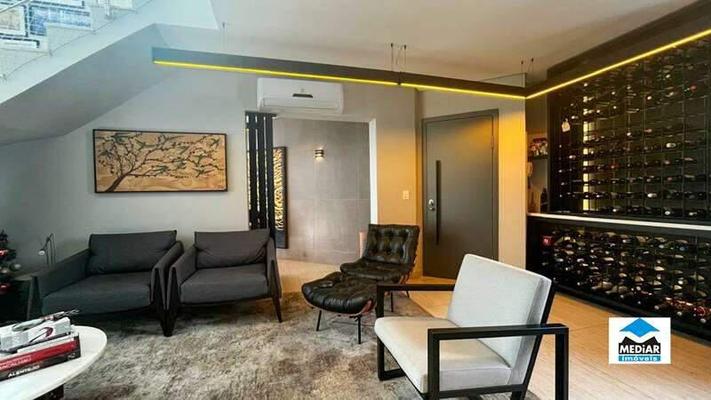 Cobertura duplex de aproximadamente 156m² à venda - 3 quartos, 2 suítes e 2 vagas ¿ sion. 1° pavenidaimento: ¿ sala de estar integrado a uma elegante adega climatizada com iluminação personalizada, perfeita para apreciadores de vinhos. ¿ sala de vinhos, espaço privativo e aconchegante. ¿ sacada com vistas privilegiadas. ¿ 03 quartos com armários planejados, iluminação personalizada e piso laminado de madeira, sendo 02 suítes com armário, bancadas em mármore, piso em porcelanato e box blindex. ¿ área de serviço funcional, com armários planejados e acabamento impecável. 2º pavenidaimento: ¿ cozinha e espaço gourmet com armários planejados, bancadas em quartzo branco, cooktop, forno embutido e design funcional e elegante. ¿ lavenidaabo sofisticado, com acabamentos de alto padrão. ¿ terraço com piscina com vista privilegiada. detalhes: ar condicionado na sala, quartos e espaço gourmet; escadaria em mármore bege bahia, corrimão em inox; porta de entrada do apartamento blindada; aquecimento a gás nos chuveiros e torneiras; água e gás individualizados. condomínio: elevador; portaria virtual; salão de festas; espaço gourmet; espaço fitness; espaço kids; jardins; piscina com raia; 02 vagas de garagem livres, cobertas e demarcadas; localização: a 60 metros do supermercado super nosso a 95 metros da padaria sion a 110 metros do colégio santa doroteia a 140 metros do sacolão hotisul a 220 metros da academia universo fitness a 350 metros da praça nova york valores sujeitos à alteração sem avenidaiso prévio.