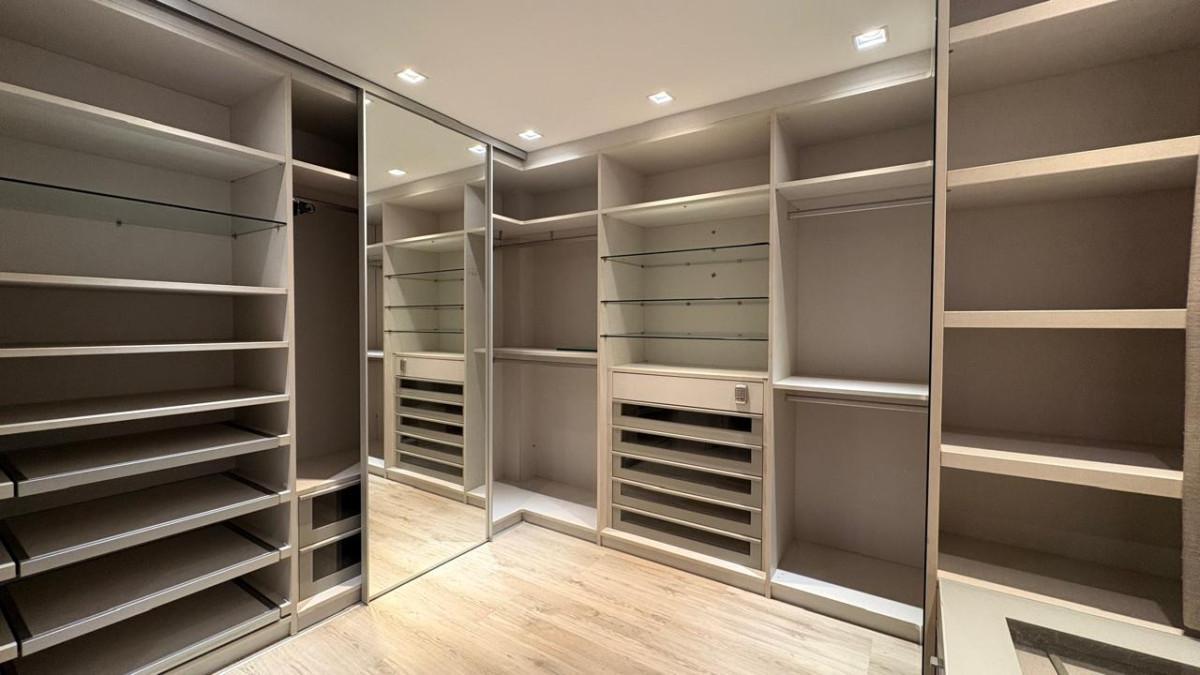 1º Nível: Sala ampla para até 03 ambientes com piso em mármore polido bege, teto rebaixado, iluminação e móveis planejados, lavabo com espelho, pia em cuba de apoio e bancada em mármore, 03 quartos espaçosos, todos com armários planejados e piso em vinílico de madeira, sendo 02 suítes, uma com closet, iluminação toda planejada, bancada em mármore, espelho, armários planejados e box em blindex (originalmente 04 quartos, um foi transformado em closet), banheiro social com bancada em mármore, espelho, armários e box em blindex, cozinha espaçosa e funcional, com bancada extensa em granito, piso também em granito, armários planejados, cuba dupla em inox, bancada de vidro estilo americana e coifa, áea de serviço ampla, com tanque, bancada e armários planejados, DCE;