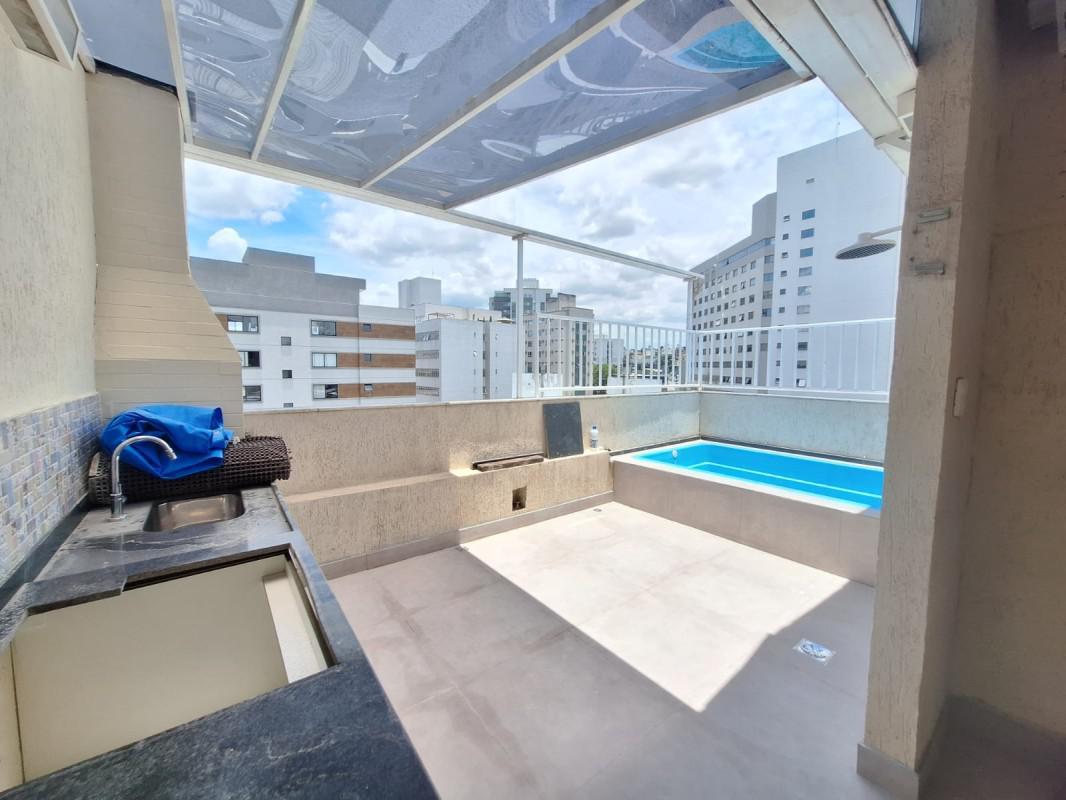 1º andar conta com sala ampla e arejada, perfeita para receber os amigos e familiares, cozinha integrada e espaçosa, ideal para os amantes da culinária, 2 quartos com armários e banho social. 2º andar 1 suíte ampla confortável e bem iluminada, lavabo e uma área externa com vista panorâmica, churrasqueira e piscina, perfeita para relaxar e desfrutar de momentos especiais. Com uma área total 100m², a cobertura conta com preparação pronta para ar-condicionado.
