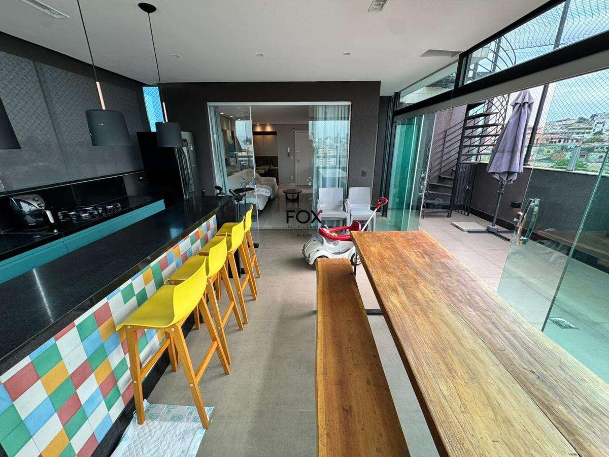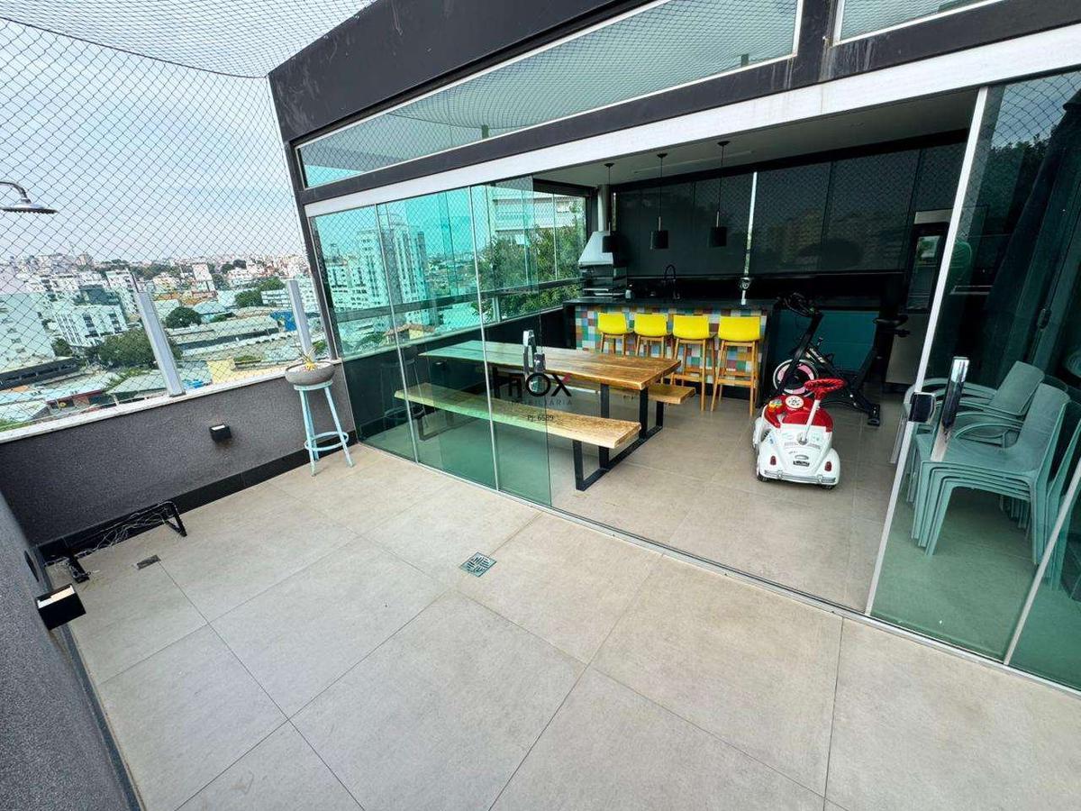 Cobertura à venda - 3 quartos (1 suíte) - 3 vagas livres - 180 m² - união cobertura triplex moderna e espaçosa, com acabamento de alto padrão e ambientes bem distribuídos. localizada em uma das regiões mais valorizadas do bairro união, combina conforto, funcionalidade e elegância em cada detalhe. detalhes do imóvel 1º pavenidaimento ampla sala para 2 ambientes com rebaixamento em gesso, iluminação planejada e piso em porcelanato banheiro social com bancada em granito, armário, espelho e box em blindex 3 quartos amplos, sendo 2 com armários planejados e 1 suíte banho da suíte com bancada em granito, armário, espelho e box em blindex cozinha estilo americana com bancadas em granito e armários planejados escada em granito com acabamento refinado 2º pavenidaimento sala de tv com piso em porcelanato lavenidaabo área de serviço independente com armário espaço gourmet completo com bancadas em granito, armários planejados e área descoberta 3º pavenidaimento (rooftop) ambiente amplo e versátil, ideal para lazer, convivência e contemplação diferenciais elevador com acesso direto ao 2º pavenidaimento 3 vagas de garagem cobertas e livres acabamentos de alto padrão em porcelanato e granito ambientes iluminados e arejados cobertura moderna e funcional estrutura do prédio prédio 100% revestido elevador social interfone e portão eletrônico gás canalizado sistema de alarme e circuito interno de câmeras localização privilegiada, próxima a comércio, supermercados, escolas e linhas de ônibus valores sujeitos a alteração sem avenidaiso prévio