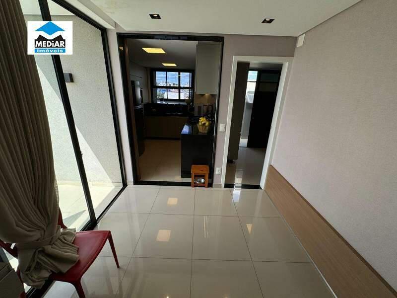 02º Pavimento: Ampla sala de TV com rebaixamento em gesso, iluminação planeja, ar-condicionado, painel de TV, cristaleira e piso em porcelanato, varanda, lavabo decorado com bancada em granito, armário e espelho, cozinha ampla com armários planejados e bancadas em granito, área de serviço independente com armários e bancada em granito, espaço gourmet coberto com churrasqueira, bancadas em granito e armários e ampla área externa com ducha e linda vista para Serra do Curral.
