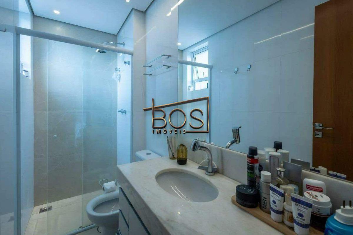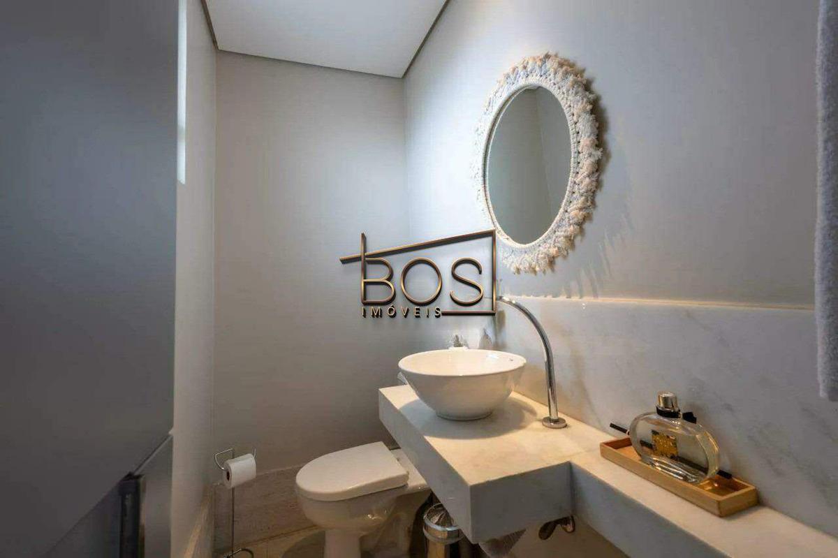 2º pavimento: sala ampla para dois ambientes, lavabo e área externa coberta com bancada em granito e armários