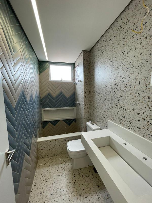 01º Pavimento: 03 quartos amplos com piso em vinílico e janelas com venezianas, sendo 01 suíte, banho das suítes com bancadas granito, banho social com bancada em granito, ampla sala para 02 ambientes com rebaixamento em gesso, iluminação planejada e piso em vinílico, varanda, lavabo, cozinha ampla com bancadas em granito e área de serviço.