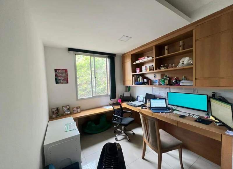 1º pavimento: sala para 2 ambientes em porcelanato, com iluminação planejada; 03 quartos, sendo 01 suíte, com piso laminado e armários planejados; 01 quarto transformado em escritório; cozinha em porcelanato, com armários planejados; área de serviço; despensa.