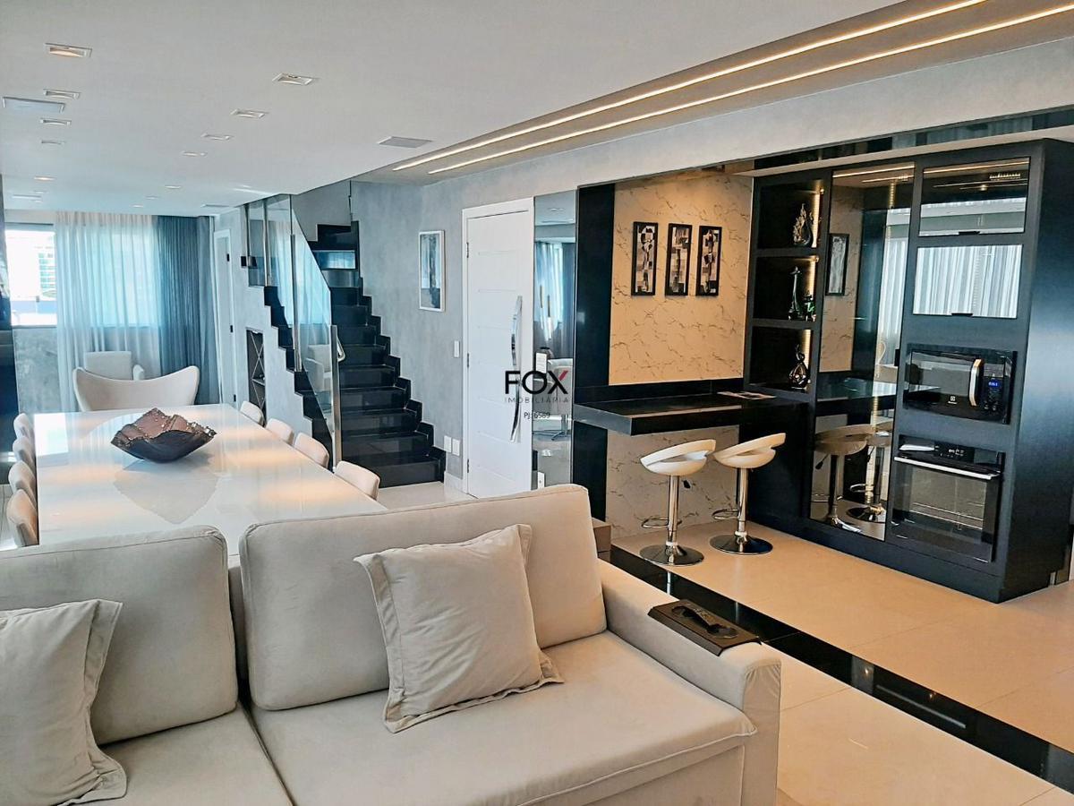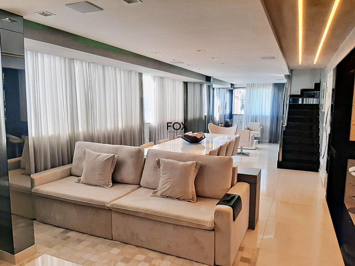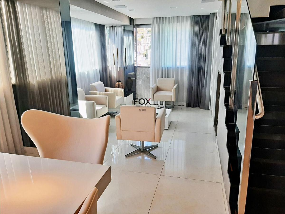 Prédio novo, imponente, 100% revestido, elevadores e salão de festas, em rua plana e tranquila, cem metros da av. mario werneck, onde se encontra um vasto comércio e linhas de ônibus. cobertura finamente decorada, a venda com toda mobília 1ºpiso - sala 3 ambientes, piso porcelanato, janelões, lindas cortinas, teto rebaixado em gesso, projeto luminotécnico. - lavenidaabo, piso porcelanato, bancada em granito, cuba sobre posta, espelho, teto rebaixado, iluminação embutida. - 3 quartos, piso vinílico, armários, ótimas cortinas, teto rebaixado em gesso, projeto luminotécnico. (um dos quartos foi transformado em closet, com fácil retorno). - banho social e suíte piso porcelanato, armário, bancada em granito, cuba sobre posta. espelho, box em vidro temperado, teto rebaixado em gesso, iluminação embutida. - cozinha estilo americano, bancada em granito, excelentes armários, cooke top, coifa, teto rebaixado em gesso, projeto luminotécnico. - área de serviço piso porcelanato. - banho de empregada. escada de acesso ao nível superior revestida em granito, fechamento em vidro temperado, corrimão em aço inox 2ºpiso - excelente sala, piso porcelanato, janelões, cortinas maravenidailhosas, teto rebaixado em gesso, projeto luminotécnico. - quarto piso porcelanato, armário, teto rebaixado em gesso, projeto luminotécnico. - banho social piso porcelanato, armário, bancada em granito, cuba sobre posta, espelho, box em vidro temperado, teto rebaixado em gesso, iluminação embutida. - área externa coberto piso porcelanato, teto rebaixado em gesso, projeto luminotécnico. - espaço gourmet com bancada em granito, armário, churrasqueira. - área externa descoberto piso porcelanato rústico