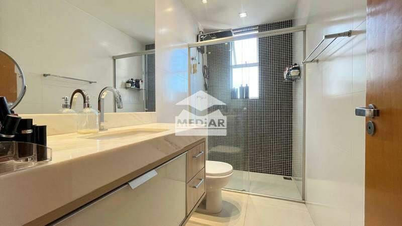 3 Quartos, sendo um deles suíte com box em blindex, armários e espelho