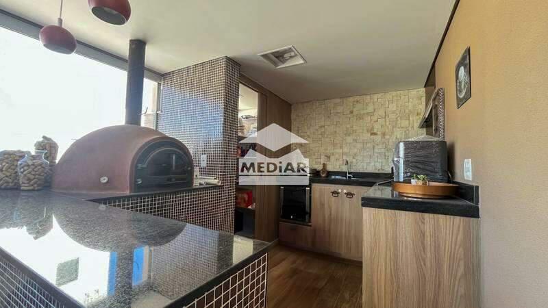 Terraço espaçoso com área gourmet equipada com forno a lenha