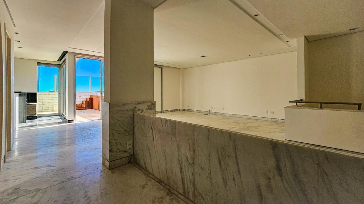 2º piso: amplo salão com piso granito, com rebaixamento e iluminação planejada, 01 quarto (escritório), 01 banho, espaço gourmet com churrasqueira, terraço com proteção em vidro, piscina com deck de madeira.
