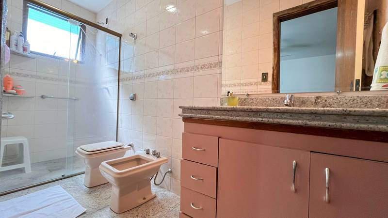 ¿ Banheiros (social e suíte) com armário, espelho e box em blindex.