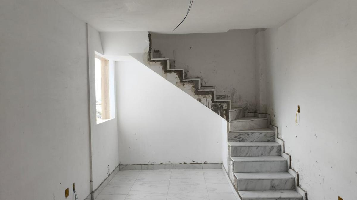 1º piso: salão apara 2 ambientes em porcelanato, cozinha integrada com bancada em granito, area de serviço separada, 03 quartos com piso porcelanato, banho social e suite com piso e bancada granito, escada em alvanaria com revestimento em marmore saindo da sala, dando acesso ao 2º piso composto de: sala com piso porcelanato, 01 quarto com piso laminado de madeira, banho suite com piso e bancada granito, terraço com vista definitiva, piso porcelanato, elevador com 2 paradas.