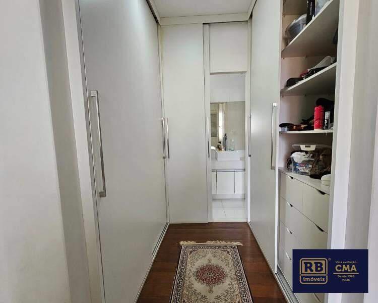 4 quartos amplos, todos com piso em tábua corrida e armários, sendo uma suíte com closet, bancada em granito, pia em cuba de apoio, teto com rebaixamento em gesso, iluminação planejada e box em blindex