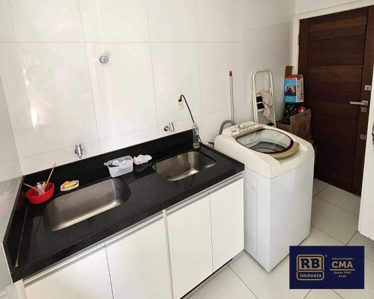 Área de serviço espaçosa com tanques e armários