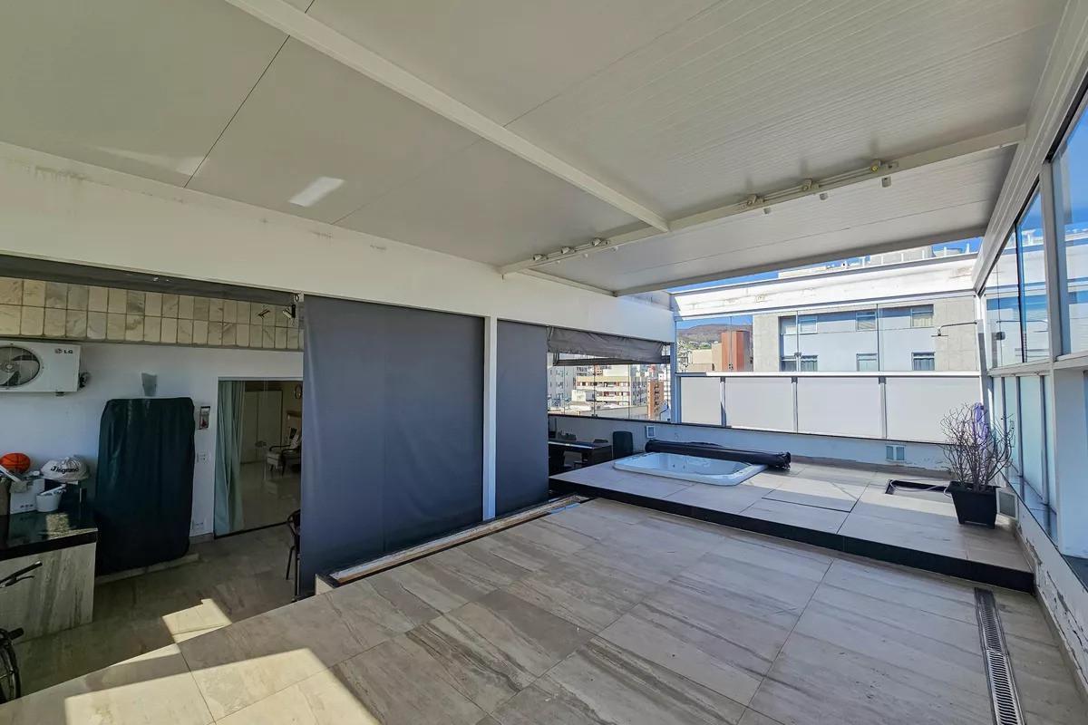 Cobertura duplex ampla, com planta bem distribuída e portas de acesso ao apartamento blindadas.