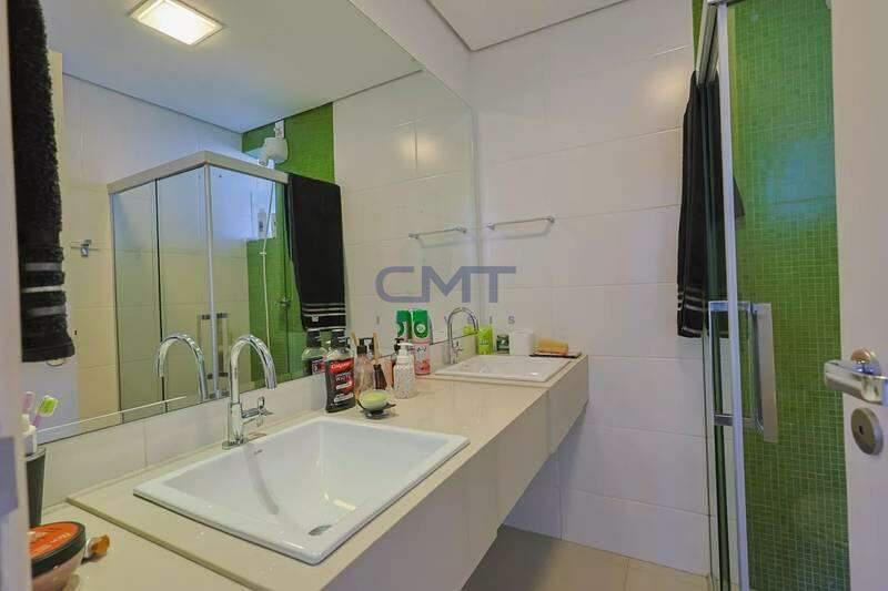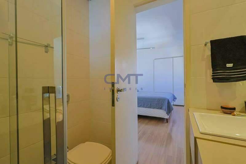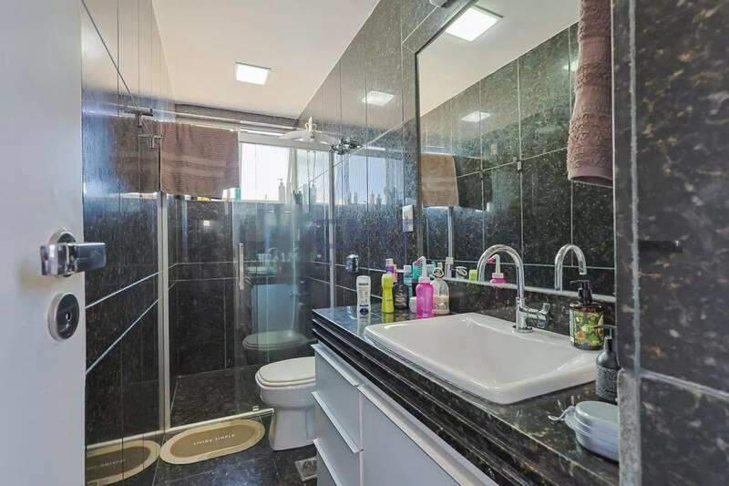 Banheiros (social e suíte) com um excelente acabamento em granito, armário, espelho e box em blindex.;