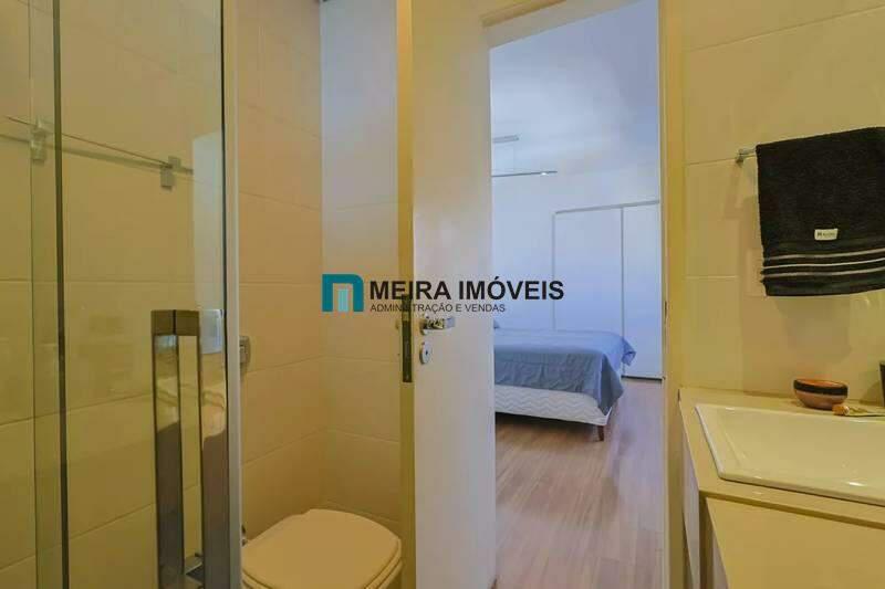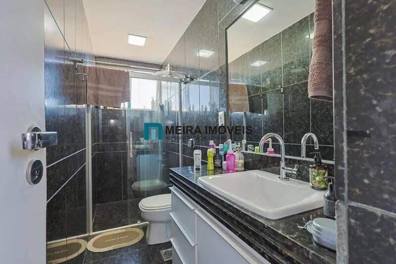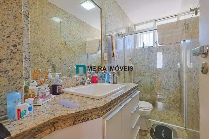 Banheiros (social e suíte) com um excelente acabamento em granito, armário, espelho e box em blindex.;