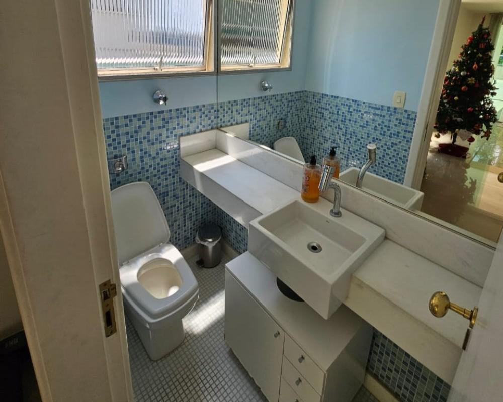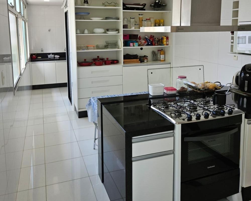 1 Pavimento 2 salas amplas com piso em tábua corrida, teto com rebaixamento em gesso e iluminação planejada 4 quartos amplos, todos com piso em tábua corrida e armários, sendo uma suíte com closet, bancada em granito, pia em cuba de apoio, teto com rebaixamento em gesso, iluminação planejada e box em blindex Cozinha ampla e funcional com bancada em granito, piso em cerâmica, armários planejados e coifa Banheiro social com bancada em granito, armários, espelho e box em blindex Área de serviço espaçosa com tanques e armários Banho de empregada 2 vagas de garagem cobertas e demarcadas