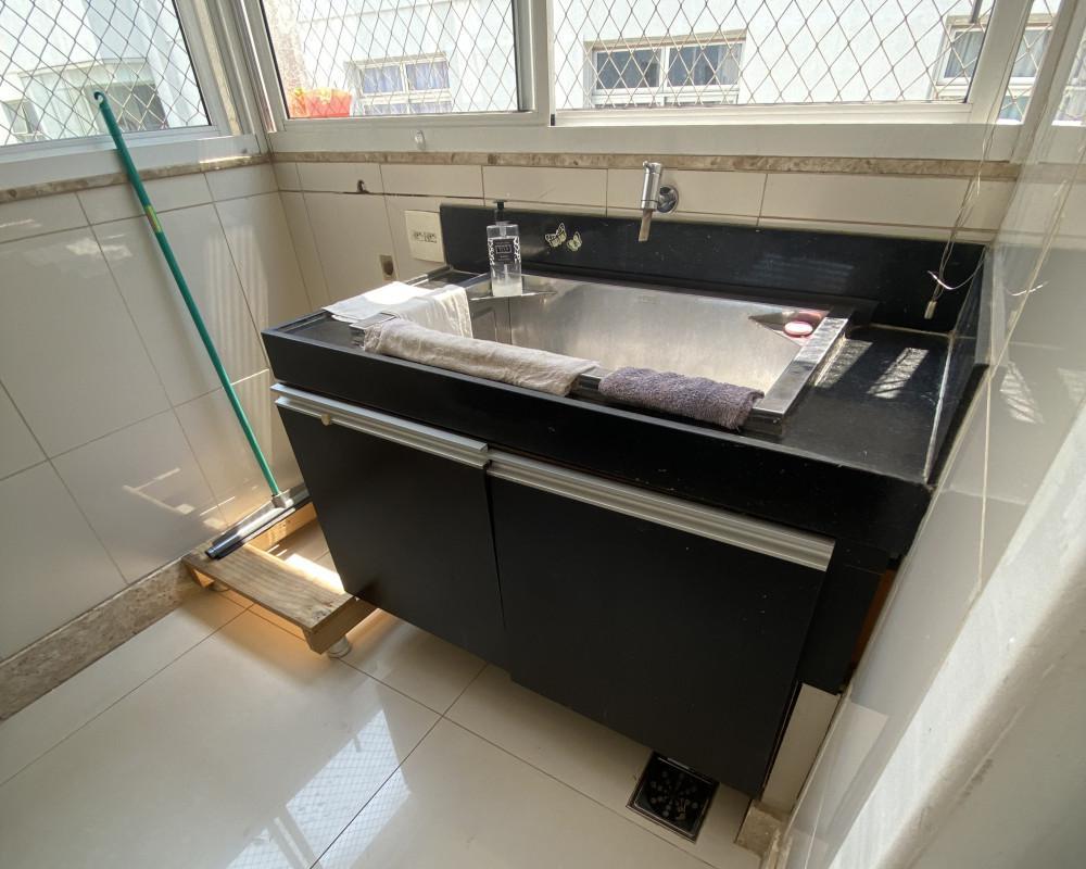 1º Nível: Sala ampla para 02 ambientes com piso em tábua de madeira e varanda, sala de jantar espaçosa, lavabo, banheiro social com bancada em mármore, espelho, armários e box em blindex, cozinha espaçosa e funcional, estilo americana, com armários planejados, exaustor, cooktop e coifa, área de serviço com tanque e armários planejados e DCE;