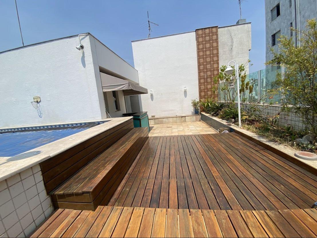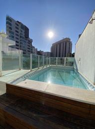 Área de piscina com bar e deck e grande
