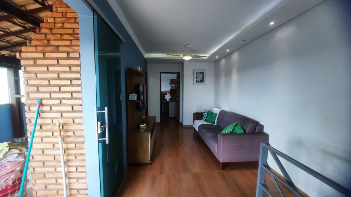 2º piso - Sala ampla; um quarto; banho social com piso e revestimento até o teto em cerâmica e box blindex; área externa com churrasqueira, parte coberta com telha colonial, linda vista, conjugada com área de serviço.Obs.: Piso cerâmica em todos ambientes.