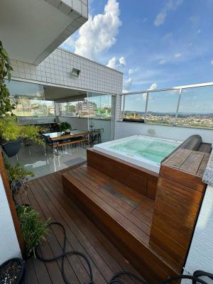 Maravilhosa cobertura à venda no Fernão Dias com 248 m² de área total e acabamento de alto padrão, composta por 02 pavimentos, sendo: 01º Pavimento: 03 quartos amplos, transformado em 02 com ampliação do quarto de solteiro (fácil reversão), ambos com armários planejados, piso em laminado de madeira e janelas com venezianas, sendo 02 suítes, banho da suítes com bancada em granito, armário, espelho e box em blindex, banho social com bancada em granito, armário, espelho e box em blindex, rouparia no corredor, ampla sala para 02 ambientes com rebaixamento em gesso, iluminação planejada, espelho, painel de TV e piso em porcelanato, varanda incorporada a sala com fechamento em blindex e cozinha com armários planejados, bancadas e piso em granito. Escada em granito 02º Pavimento: Sala de TV com rebaixamento em gesso, iluminação planejada e piso em porcelanato, lavabo com bancada em granito e armário, quarto transformado em escritório com armários planejados e piso em laminado de madeira, área de serviço independente com armário, espaço gourmet coberto com churrasqueira, bancada em granito e armário e área descoberta com jacuzzi, Deck em madeira e linda vista. 04 Vagas de garagem cobertas, paralelas e demarcadas + 02 vagas de moto no registro. Prédio revestido, com interfone, portão eletrônico, Hall Social Decorado, elevador social, circuito de TV, sistema de alarmes, jardins, salão de festas, excelente localização privilegiada, próximo a todo tipo de comércio e com fácil acesso a linhas de ônibus. Ano de construção: 2015. Agende já sua visita!!!