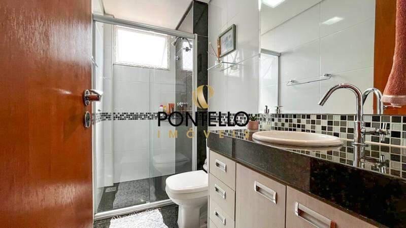¿ Banho social com bancada em granito, armário, espelho e box em blindex