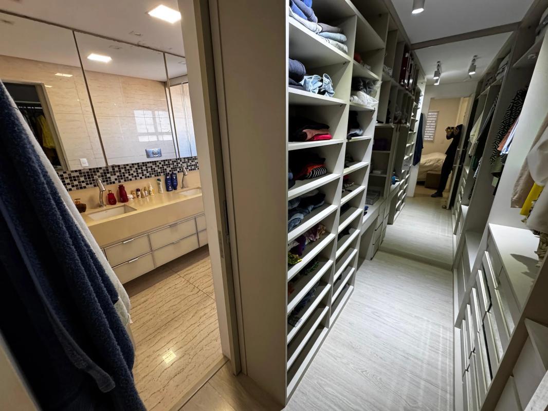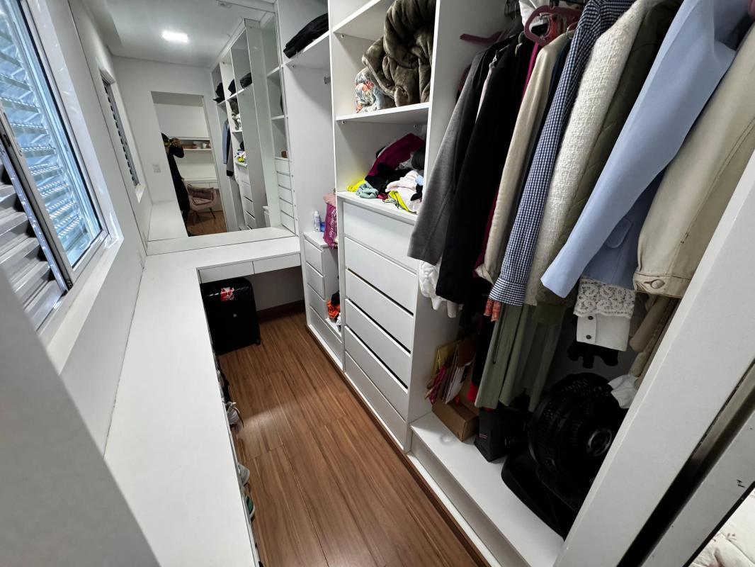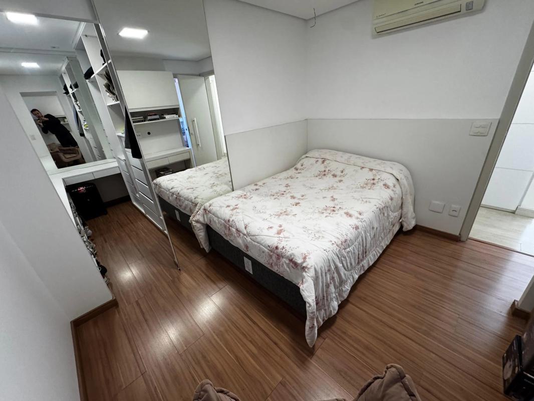4 Quartos com armários planejados e piso em laminado de madeira, sendo um transformado em closet e dois com suíte