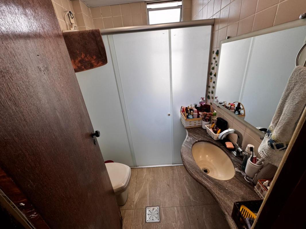 Banheiro social com bancada em granito e box em blindex