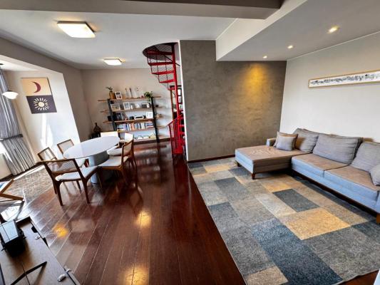 Sala de estar/jantar ampla para 02 ambientes, com piso em tábua corrida