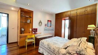 3 quartos amplos, todos com teto rebaixado e iluminação planejada, sendo 2 semi-suítes com espelho, armários planejados e box em blindex uma suíte com espelho, armários planejados, box em blindex, piso em tábua corrida e duas varandas