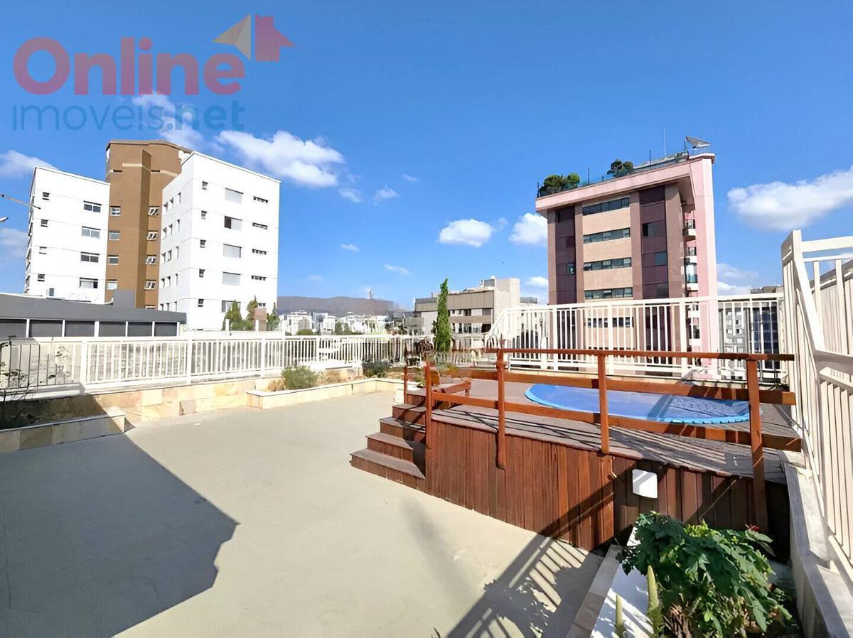 Prédio: Imponente, recuado, revestido em mármore/granito, portaria 24 horas, hall social decorado, área livre ajardinada, cerca elétrica, gás canalizado, interfone, 02 elevadores, salão de festas, quadra esportiva, portão eletrônico, 03 vagas paralelas. Cobertura espaçosa com 300,31m² sendo 177,37m² de área interna e 122,94m² de área externa, com 4 quartos, sendo 1 suíte e 3 vagas de garagem, a cobertura conta com piscina privativa, banheira de hidromassagem na suíte e ar condicionado. Cobertura: 1º Piso: Sala para 02 ambientes, com lavabo, copa, 04 quartos amplos com armários, sendo 01 suíte com closet, banho social e suíte (com armários e banheira de hidro), cozinha planejada com armários, despena, área de serviços, acesso de serviço para o segundo piso pela lavanderia. 2º Piso: Sala tv, lavabo, área descoberta com deck e piscina aquecida, linda vista ara Serra do Curral. **** Proprietário aceita permuta por imóvel menor valor **** Valores sujeitos à alteração sem aviso prévio.