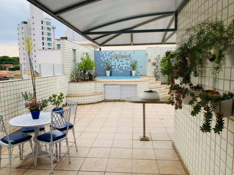 Excelente cobertura, sendo 4 quartos, 1 suíte com hidromassagem, todos os quartos com armários, banho social com armário e blindex, sala para 2 ambientes, varanda, cozinha montada, área de serviço, DCE. 2 pavimento contendo, 1 sala, armário, escritório, espaço gourmet, piscina, churrasqueira, área livre, linda vista definitiva, 4 vagas para até 6 carros, elevador, prédio todo revestido, 1 por andar.