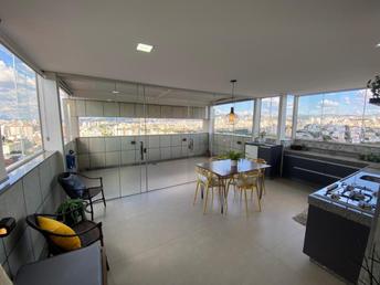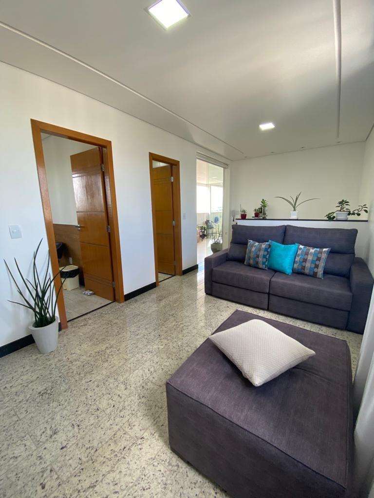 Linda cobertura a venda com excelente padrão de acabamento - 04 quartos, sendo 01 suite com armários - 02 salas amplas - 02 cozinhas montadas - ar condicionado - elevador - 03 vagas de garagem (mas cabem 4 carros) - prédio revestido em ótima localização, próximo a escolas, supermercados e comércios em geral. - vista panorâmica e definitiva.