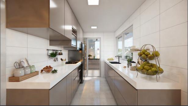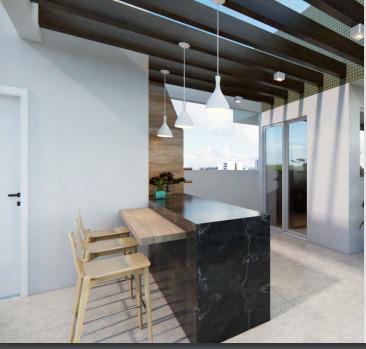 - Cozinha americana com bancada em granito (piso em cerâmica);