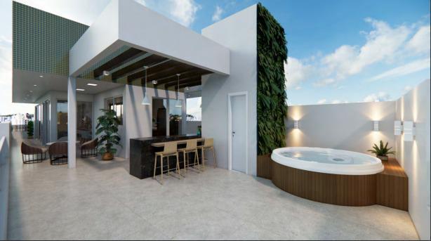 - Área gourmet com bancadas em granito e piscina,