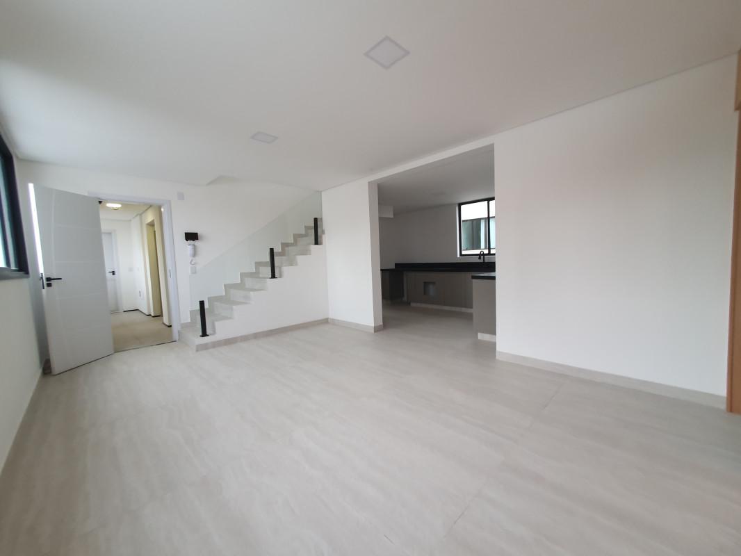 Sala ampla para dois ambientes com cozinha integrada, com armários planejados, bancada em granito e área de serviço.