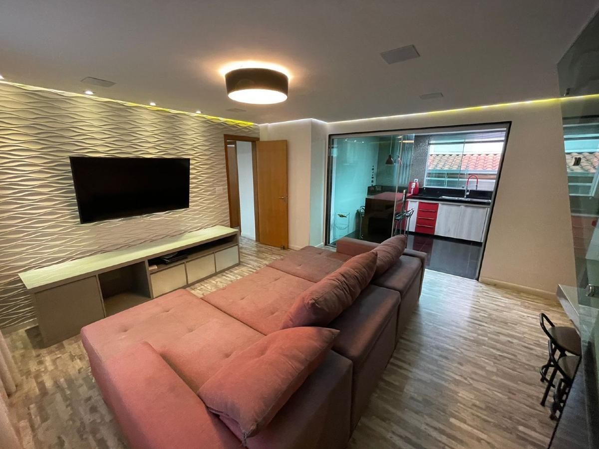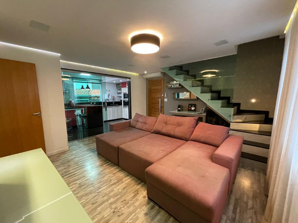 Cobertura à venda no Santa Inês com 160 m² de área total, composta por 02 pavimentos, sendo: 01º Pavimento: 03 quartos amplos com armários planejados e piso em laminado de madeira, sendo 01 suíte com closet e ar-condicionado, banho da suíte com bancada em granito, armário, espelho e box em blindex, banho social com bancada em granito, armário, espelho e box em blindex, ampla sala para 02 ambientes com rebaixamento em gesso, iluminação planejada, ar-condicionado e piso em laminado de madeira e cozinha americana com armários planejados e bancadas em granito. Escada em granito 02º Pavimento: Sala de TV com rebaixamento em gesso, iluminação planejada, cortina de vento e piso em porcelanato, lavabo, 01 suíte ampla com armários planejados, ar-condicionado e piso em laminado de madeira, banho da suíte com bancada em granito, armário, espelho e box em blindex, área de serviço independente, espaço gourmet coberto com churrasqueira, bancada em granito, armário, fogão Cooktop e coifa e área descoberta com linda vista. - Aquecimento solar. 03 Vagas de garagem cobertas, sendo 01 livre e 02 em linha. Prédio com fachada revestida, interfone, portão eletrônico, elevador social, gás canalizado, sistema de alarmes, jardins, excelente localização privilegiada, próximo a todo tipo de comércio e com fácil acesso a linhas de ônibus. Agende já sua visita!!!! -
