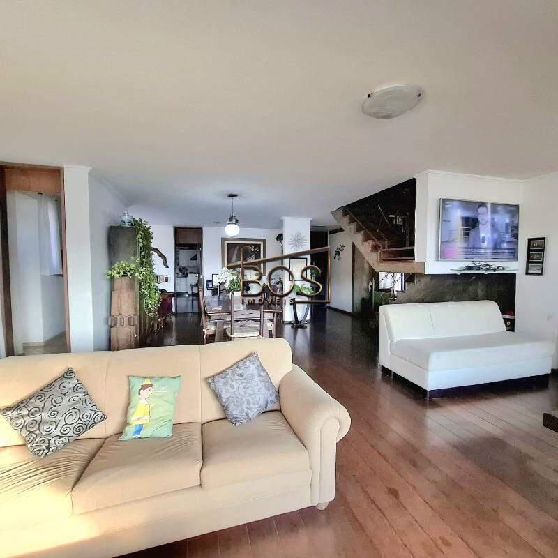 - Ampla sala de jantar integrada a uma enorme sala de estar/TV, com piso em tábua corrida, rebaixamento em gesso e vista privilegiada para a cidade e para a mata (sol da tarde).