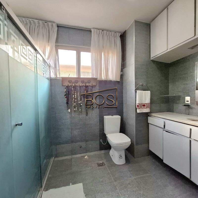- Banheiro Social grande, com armários, box grande de vidro, espelho em toda parede