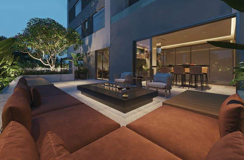 Gourmet com Grill sob pergolado e terraço Fitness com terraço