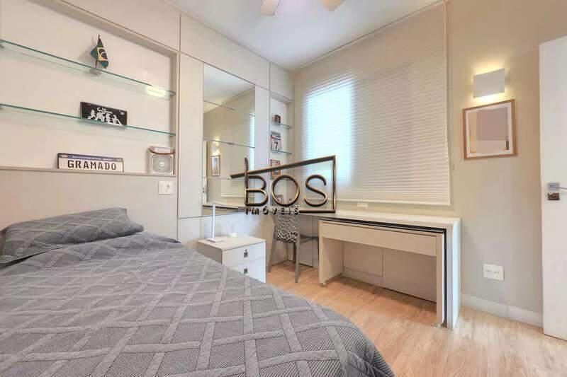 - 04 quartos amplos, todos com armários, piso vinílico amadeirado, teto rebaixado e iluminação planejada, sendo uma suíte com bancada em granito, espelho e box em blindex