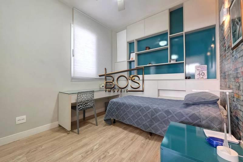 - 04 quartos amplos, todos com armários, piso vinílico amadeirado, teto rebaixado e iluminação planejada, sendo uma suíte com bancada em granito, espelho e box em blindex