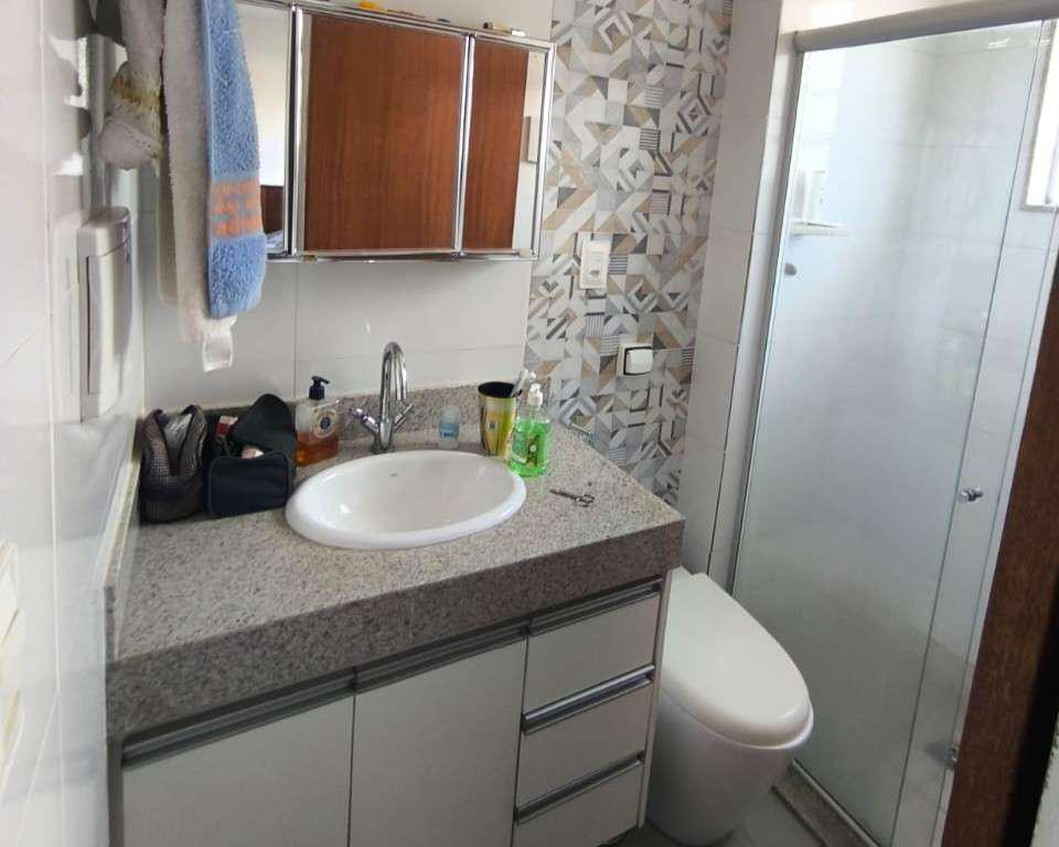 Banheiros (social e suíte) com excelente acabamento, armários, espelhos e box em blindex.