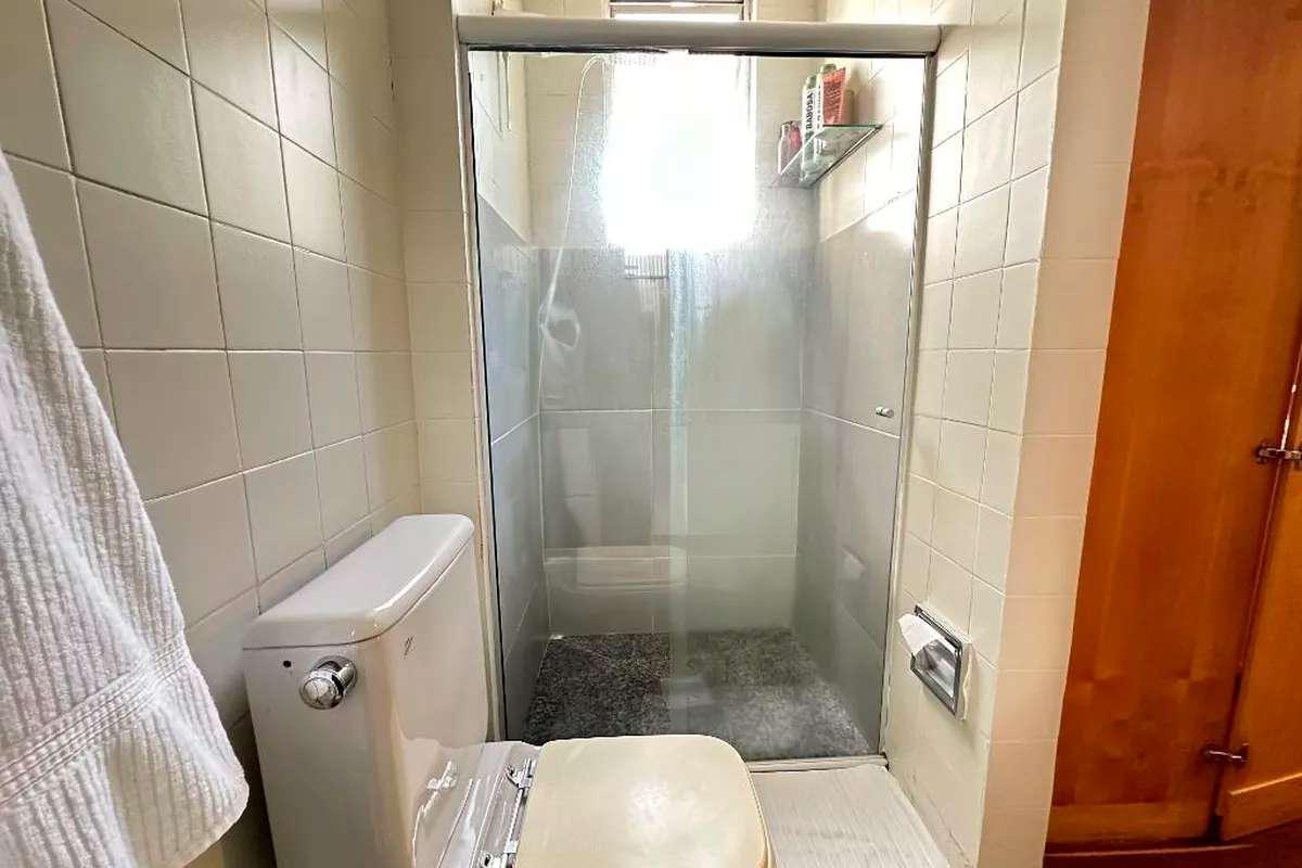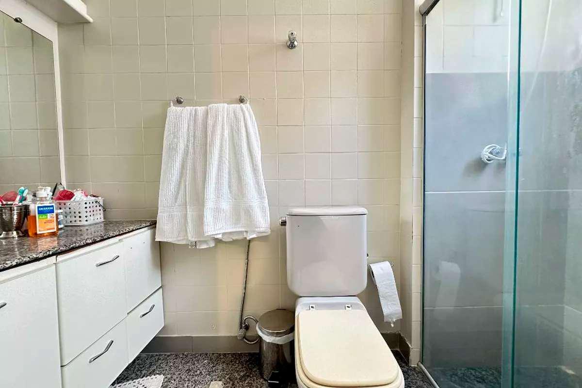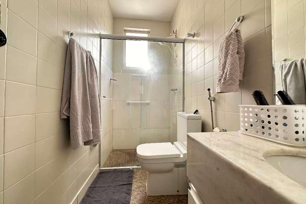 03 Banho social, bancada em granito, box blindex, piso em granito;