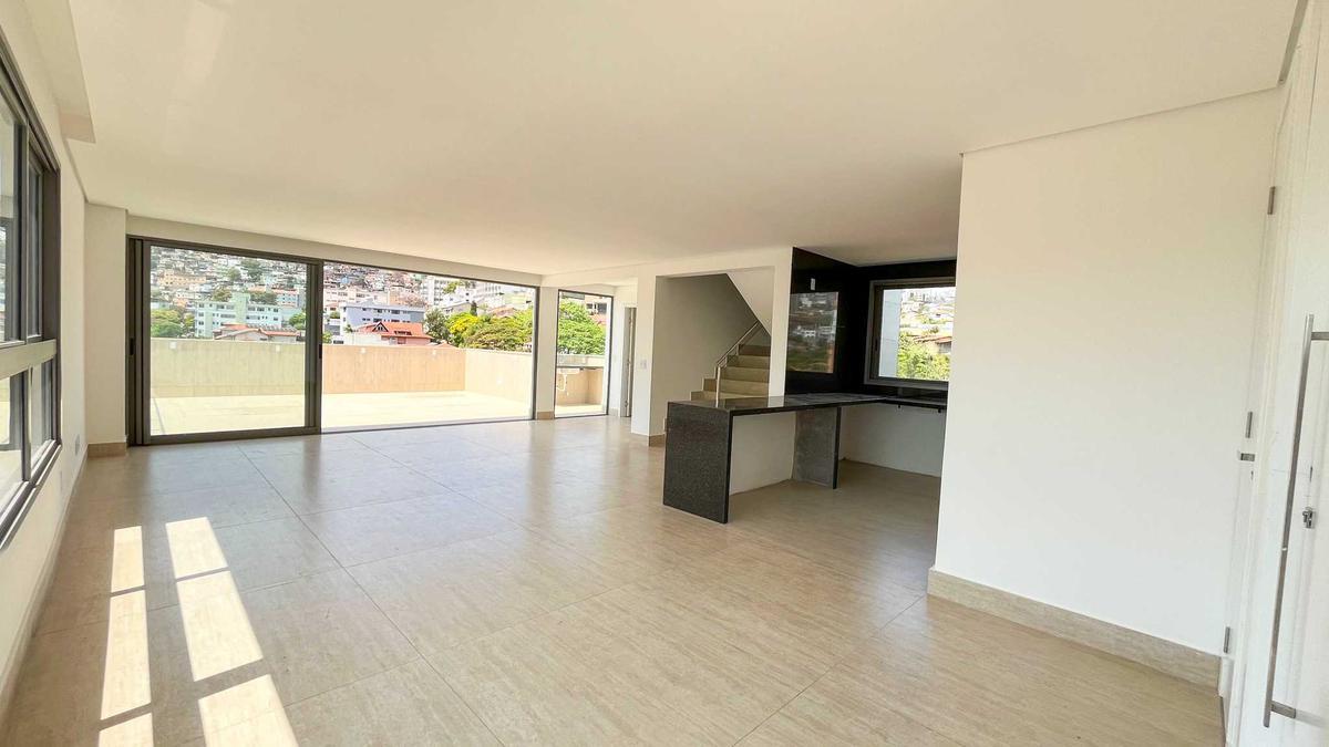 Cobertura duplex à venda - 199m² - 4 quartos 2 semi-suítes e 1 suíte - 3 vaga - lazer completo - são bento cobertura espaçosa e bem distribuída no bairro são bento, com excelente acabamento e infraestrutura. primeiro piso sala ampla para dois ambientes com piso em porcelanato cozinha com bancada em granito integrada à sala lavenidaabo varanda com bancada em granito área de serviço dce completa segundo piso sala de tv banheiro social 4 quartos, sendo 2 semi-suítes e 4 suíte, todos em piso vinílico de madeira vaga de garagem 3 vaga coberta e livre infraestrutura do prédio 100% revestido, com 9 andares e 2 apartamentos por andar 2 elevadores (acesso até o último nível) alarme, câmeras de segurança e interfone gás canalizado individual água inclusa no condomínio lazer do condomínio piscina academia sauna salão de festas localização privilegiada em um dos bairros mais tradicionais e valorizados da região centro-sul de belo horizonte. valores sujeitos a alteração sem avenidaiso prévio