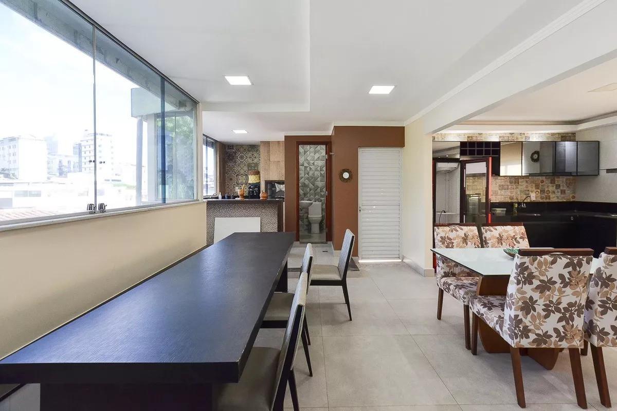 Cobertura com área total de 215m², sendo 161m² de área interna e 54m² de área externa.