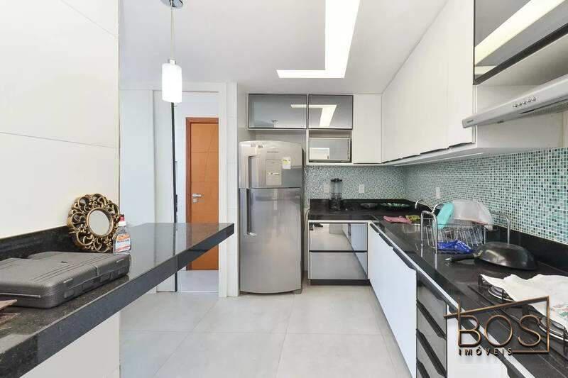 - Cozinha funcional com bancada em granito, cooktop e piso em porcelanato.